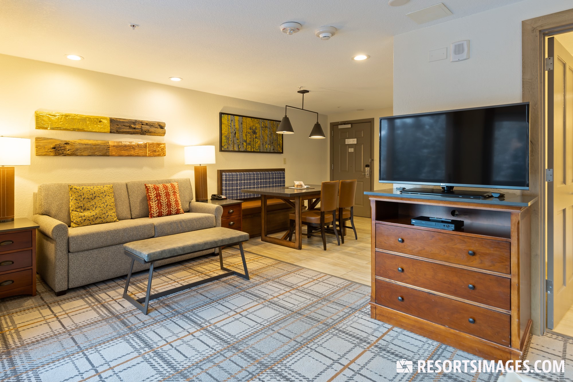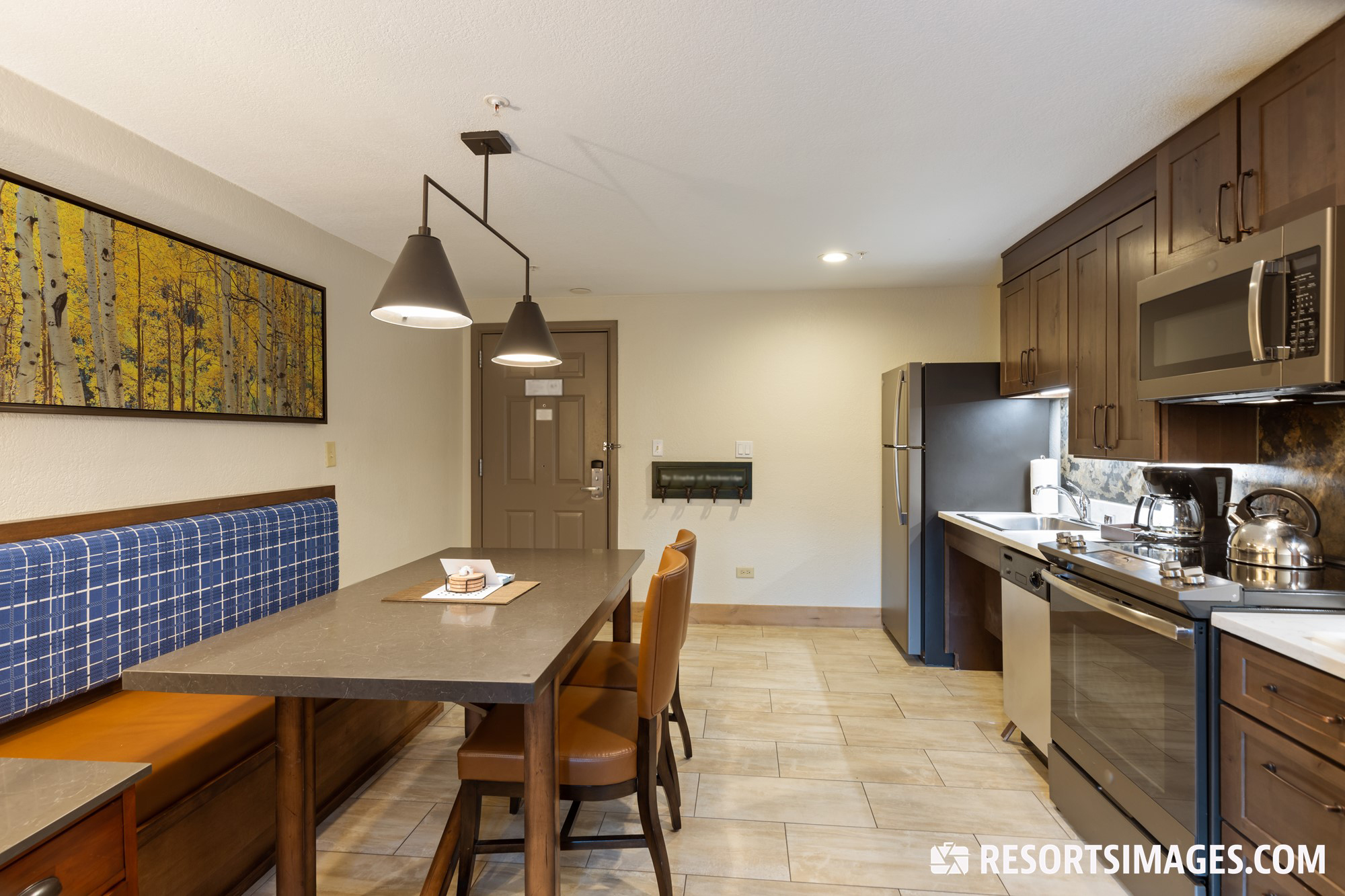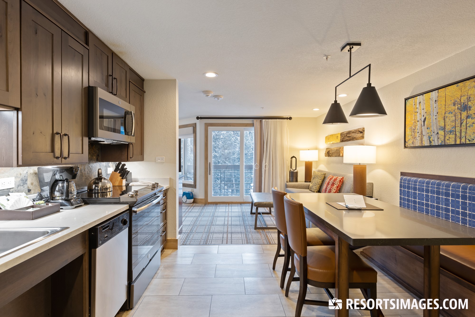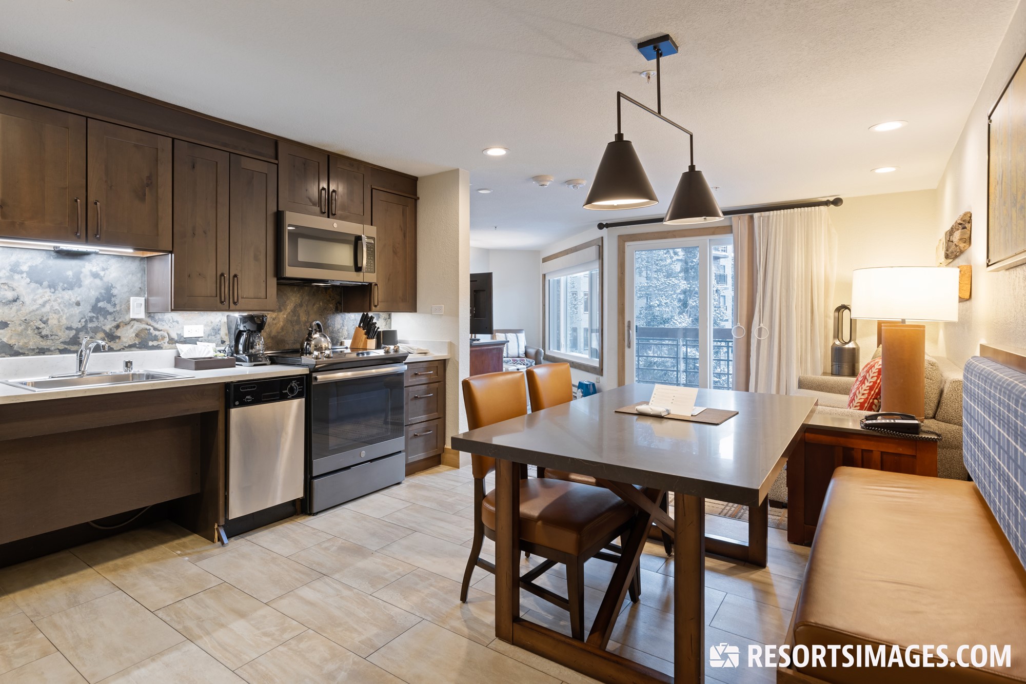 The accommodations at the resort include well-appointed studios and one bedroom villas, offering enough space for couples or groups of up to four. Perfect for those who want to hit the slopes in winter or hike the towering mountain peaks in the summer, the rooms at the Mountain Valley Lodge are equipped with modern furnishings to ensure a comfortable stay. Common in-unit amenities consist of fully-equipped kitchens, private balconies looking out toward the mountain slopes, and luxurious whirlpool-style tubs.