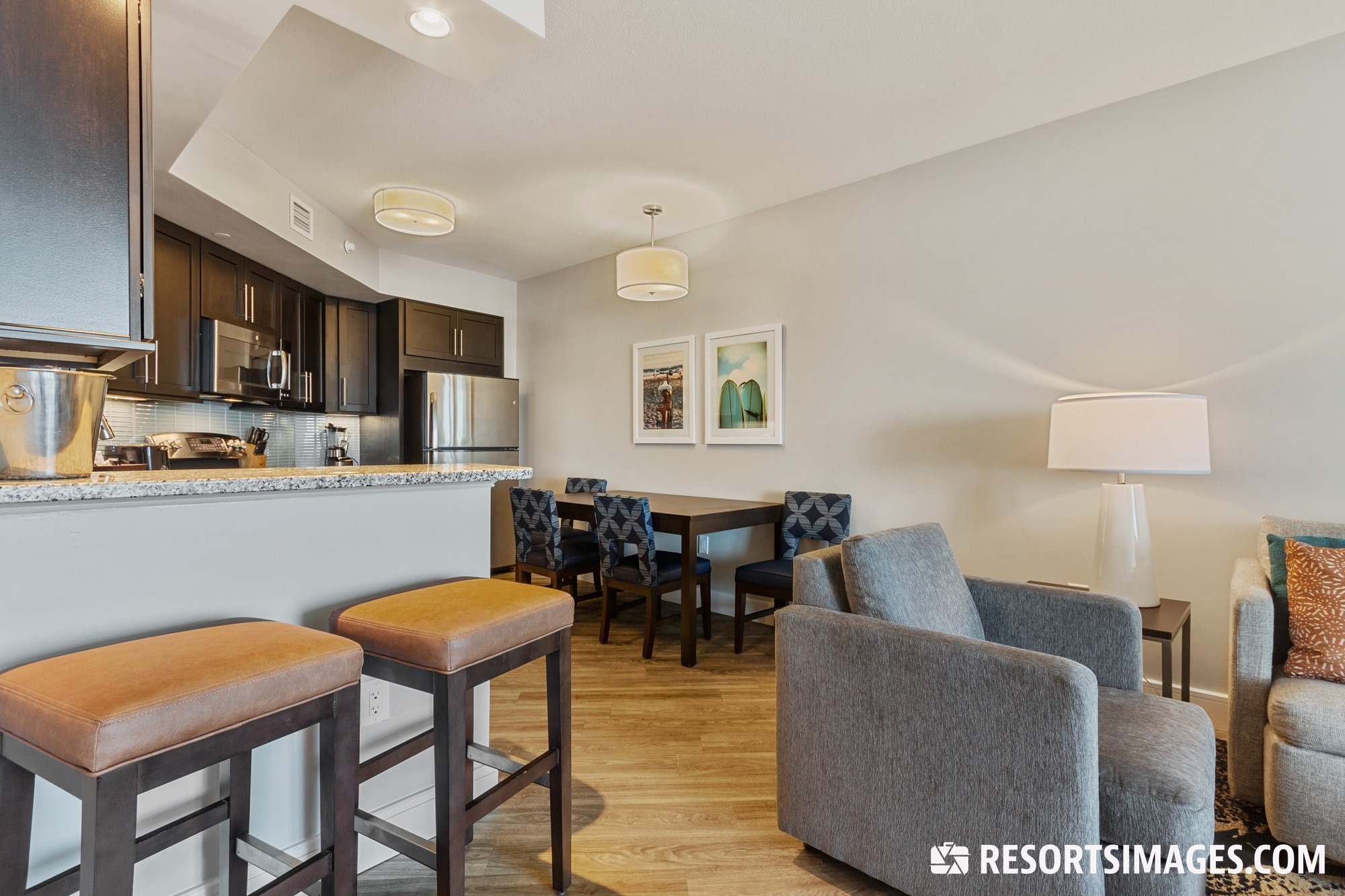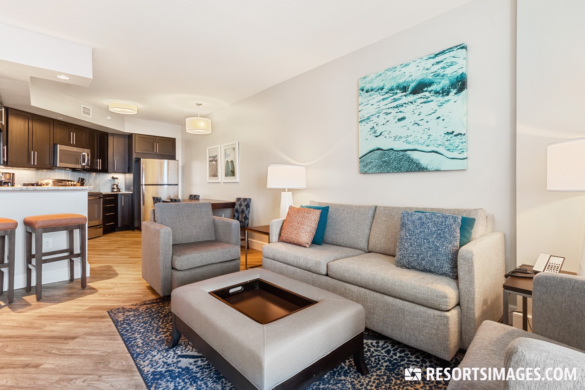 Ocean 22 timeshare units are available as one-, two-, and three-bedroom suites, perfect for families big and small. These homey units offer full kitchens, living rooms, laundry machines, and private balconies with ocean views. Step outside your suite and enjoy the resort amenities like swimming pools, fitness center, lounge area, and dining options.