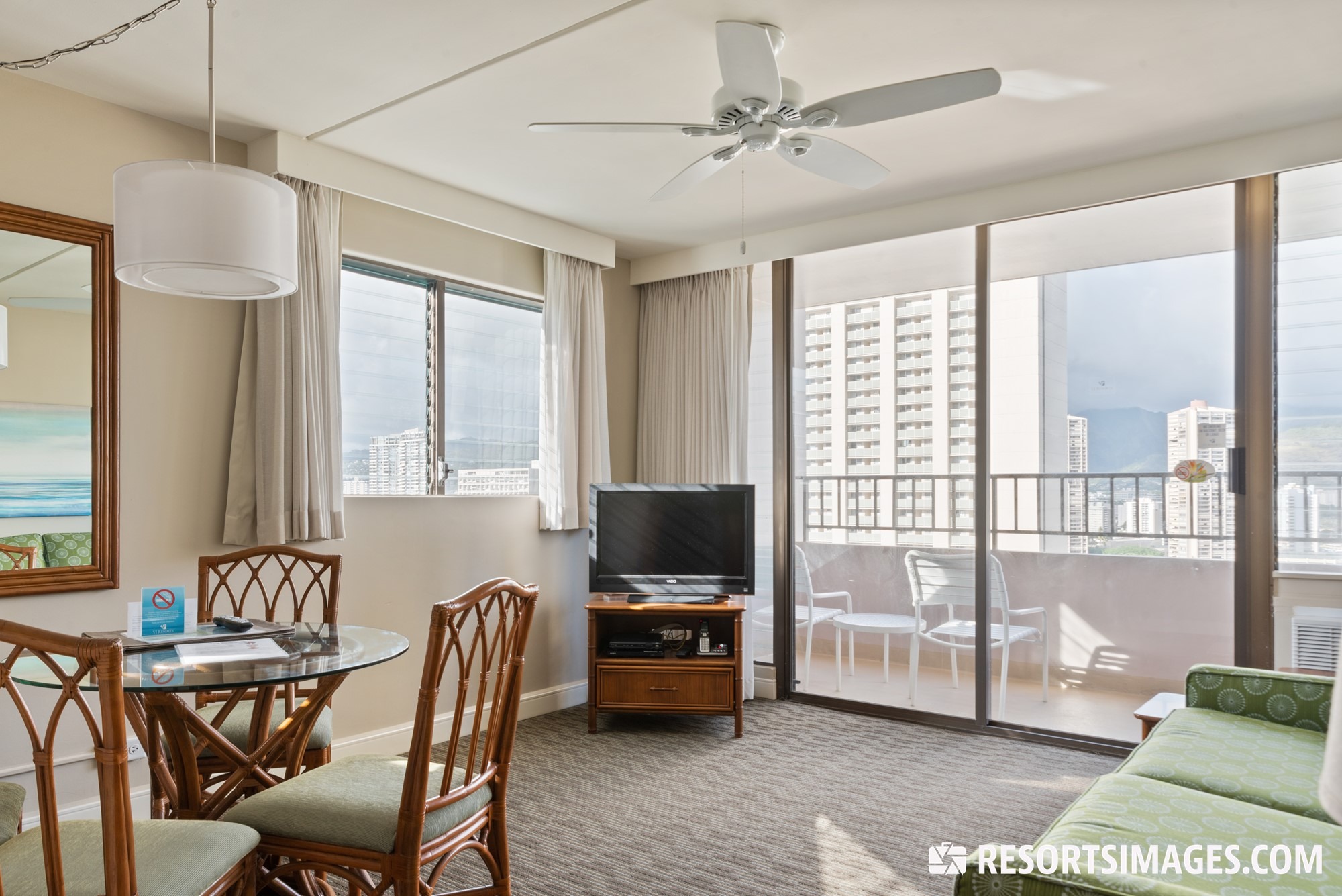 Spacious one-bedroom suites provide the perfect accommodations for a comfortable and relaxing stay. Enjoy having a private bedroom with a queen bed, fully equipped kitchen to prepare your own meals, full bathroom, and extra space in the living and dining area. All units also feature a private patio or balcony with neat surrounding views of beautiful Honolulu. Sleeping four guests, these units are ideal for small families or couples looking for accommodations with added convenient amenities.