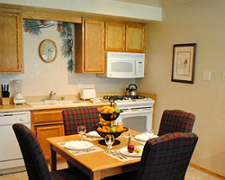 Each warm and cozy one-bedroom suite accommodates four guests comfortably with plenty homey features and a gorgeous atmosphere. Each unit features a fully equipped kitchen with modern appliances, spacious living area with a gas fireplace, king size bed, sleeper sofa, and a full bathroom. The decor is elegant and the furnishings are comfortable and will make you feel right at home.