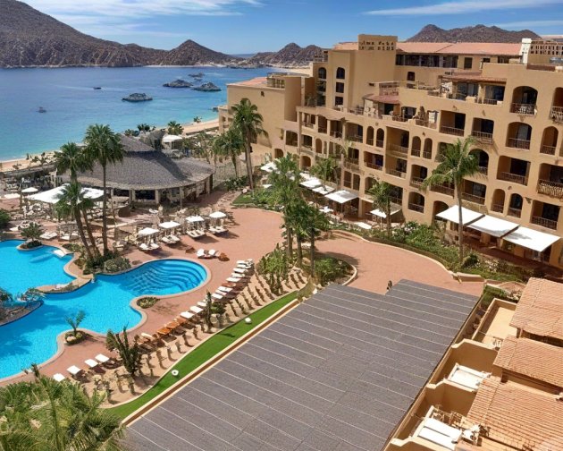 *Casa Dorada San Lucas Bay* is set on Medano Beach near the often-photographed arch. Each air-conditioned unit has a terrace. All units are non-smoking. This resort has a poolside beach club and a popular nightclub that plays host to weekend parties. All water sports are available, along with swimming pools, a whirlpool, volleyball, restaurants, and bars. The area is famous for some of the world's best marlin fishing tournaments. Please note that this is an adult-oriented resort.
