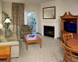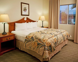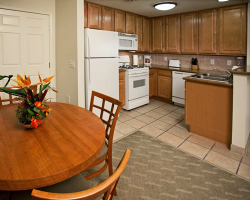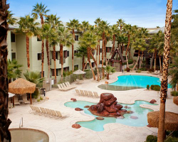 Located just three miles from the Las Vegas Strip, *Tahiti* is a Polynesian-themed resort. Guests will enjoy the spacious two-bedroom suites or the deluxe sleep-eight suites, both of which have a separate lock-off with a kitchenette. One- and two-bedroom accommodations have a fireplace, television, DVD, stereo system, whirlpool tub, and a separate whirlpool tub and shower in the deluxe suite. Amenities include an exercise room, massage services and facial treatments, sundry shop, two sand-beach swimming pools, poolside palapas, barbecue picnic area, putting green, concierge activity desk, and transportation to and from the Strip.